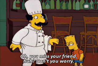 Oh, you miss your friend, huh? Don't you worry. My cooking, she'll-a cheer you up. Hey, Salvatore, give-a the ugly kid a plate of the red crap!