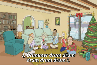 J, Drummer drum drum drum drum drum J, J, Drum drum drum drum drum drum J, J, Christmas drums J, Oh, sing it, Summer. J, Christmas drums being played by a b-o-o-o-y J, Oh, I love to hear you sing.