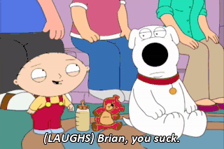(LAUGHS) Brian, you suck. What the devil is in here? I threw out all your apple juice, Stewie. We're a gas family now. You put gasoline in Stewie's bottle?