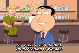 No, guys. I can't do that. It's degrading to women.
