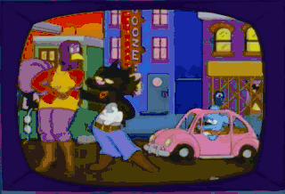 Hey-y-y! Hey, my threads, baby. How come I've never seen that Itchy & Scratchy before? Perhaps because you are a prepubescent ignoramus.
