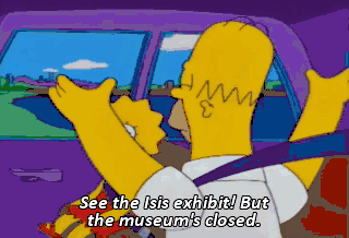 See the Isis exhibit! But the museum's closed. Hmm. Closed, eh? So getting in would be a pretty big risk. What do you say, honey? Feelin' stupid? I know I am!