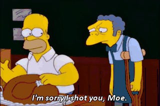 I'm sorry I shot you, Moe. Aw, that's okay. It's like my dad always said, "Eventually, everybody gets shot."