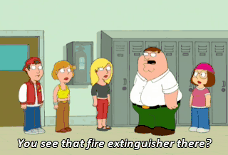 You see that fire extinguisher there? Dad, that's enough! Dad, that's enough! That's enough, Dad! (CRYING)