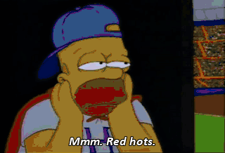 Mmm. Red hots. Ladies and gentlemen, Capital City's newest sensation, Dancin' Homer ! Hmm. These do taste better at the ball park. Uh-oh. There he is ! I was graceful. I was witty.