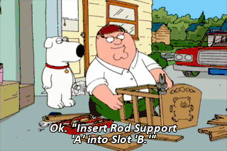 Ok. "Insert Rod Support 'A' into Slot 'B.'"