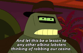 And let this be a lesson to any other albino lobsters thinking of robbing our casino.