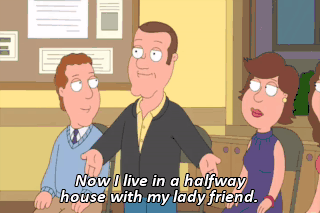 Now I live in a halfway house with my lady friend. And next month, we're going on a bus trip to Worcester. What the fuck?