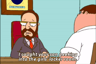 I caught your son peeking into the girls' locker room. Oh, Chris! So what's the big deal?