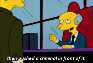 then pushed a criminal in front of it. Find this dog. I want to make him my executive vice president. Uh, yes, sir. In the meantime, here's Frank Grimes. The self-made man?