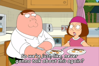 So we're just, like, never gonna talk about this again? That's right, sweetie.