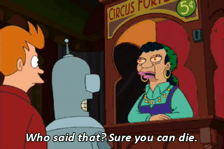 Who said that? Sure you can die. You want to die? No! I want to live. There's still too many things I don't own.