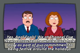 Yes, April Fools! We at Channel Five News concocted the whole black hole story as part of our commitment to being festive around the holidays.