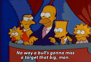 No way a bull's gonna miss a target that big, man. Who are those people ?
