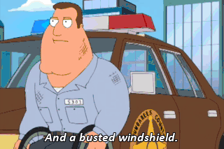 And a busted windshield.