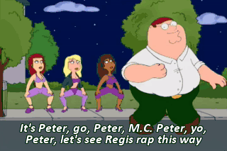 It's Peter, go, Peter, M.C. Peter, yo, Peter, let's see Regis rap this way Can't touch me Except for you. You can touch me.