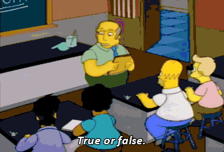 True or false. True. Homer, I was just describing the test. True. Homer, just take the test, and you'll do fine. False.