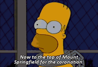 Now to the top of Mount Springfield for the coronation. Remove the Stone of Shame. Whoo-hoo! Attach the Stone of Triumph.