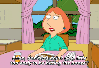 Brian, don't you think it's a little too early to be hitting the booze? Hey, what's the point of waiting? You got to live life while you can and live it hard. The Chris Farley method, that's good.