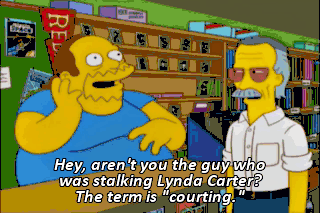Hey, aren't you the guy who was stalking Lynda Carter? The term is "courting." The restraining order says "no, no," but her eyes say "yes, yes." Let's see what you've got, son.