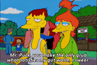 Mr. Puck, you make the only grub what satisfies my gut worm, I swear. Try my Rice Krispie squares. They are wasabi-infused with a portobello glaze. And you can buy them at the airport.