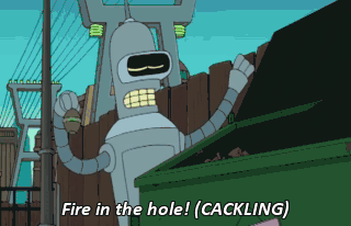 Fire in the hole! (CACKLING) (SCREAMING) (BABBLING INCOHERENTLY)