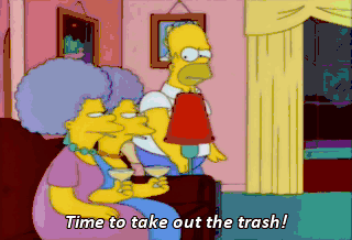 Time to take out the trash! But first I'm going to have to ask you to leave. I'm sorry. Homer doesn't mean to be rude. He's just a very complicated man.