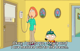Okay, I got to go. Stewie and I are headed out to the beach.