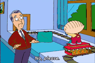 No, please. Don't! How ironic. "Rogers." It almost rhymes with "Eliminate." No! What? What? What the devil? It's ok, Stewie. You were just talking in your sleep. But now it's time for you to meet Mr. Death.