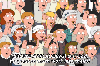 (CROWD APPLAUDING) Oh, God, they put so much work into theirs! I didn't know we could rip off movies!