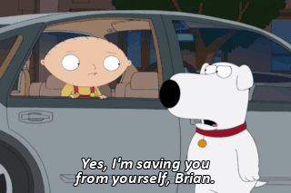 Yes, I'm saving you from yourself, Brian. You almost went in there and tried to have sex with that girl.