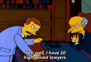 Yes, well, I have 10 high-priced lawyers. He left his briefcase. Hey! It's full of shredded newspapers. Well, I guess that's it. People like us can't afford justice.