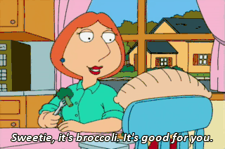 Sweetie, it's broccoli. It's good for you. Now open up for the airplane.