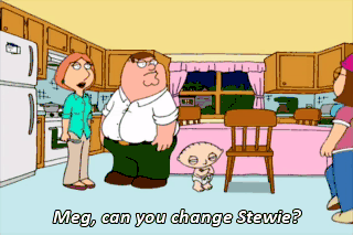 Meg, can you change Stewie? Fine. But this time, if a boy calls, please don't tell him I'm wrist deep in poopie.