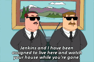 Jenkins and I have been assigned to live here and watch your house while you're gone.