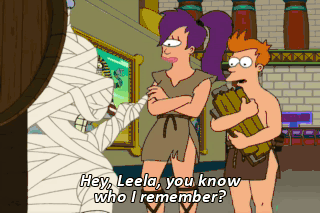 Hey, Leela, you know who I remember? Oh, please let it be me. That guy who used to bend things. You know. Me. Please. Hermes. All right, all right!