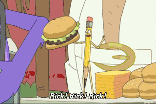 Rick! Rick! Rick! Wait. Noooooo! Shoot. Now look. It's like a "Where's Waldo?" page. Can you find me? Check out all these zany characters. We'll be right back after these messages.