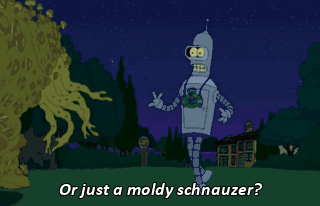Or just a moldy schnauzer? - (GROWLING) - (YELLING) Oh, God, please let this tacky Hollywood mansion have the obligatory... Yes! Tuscan-inspired pergola! (CHUCKLES) Peace out, Portobello. Thank you, Leroy.