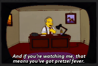 And if you're watching me, that means you've got pretzel fever. And not the kind that attacked my intestinal lining some years back.
