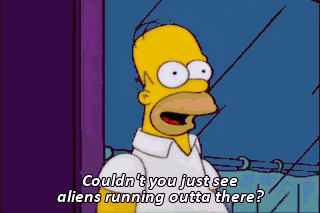 Couldn't you just see aliens running outta there? Couldn't ya? Hey, wait up! Looks like a long wait to get in. Not for friends of Moe's. Oi! Oi! Is your name on the list? Don't you know who I am?