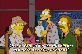 Oh, oh. Can ljust push this plaster cast onto one of your boobs?
