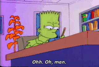 Ohh. Oh, man. "'My Confession' by Bart Simpson. "I am a regular dumb kid. Period. I cheated on my intelligence test. Period."