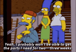 Yeah, I probably won't be able to get the parts I need for two-- three weeks. And that's if I order 'em today-- which I won't.