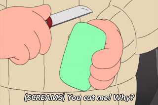 (SCREAMS) You cut me! Why? What is that possibly supposed to show the consumer?