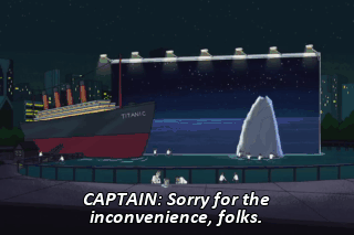 CAPTAIN: Sorry for the inconvenience, folks. We should resume sinking shortly.