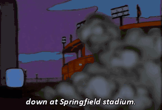 down at Springfield stadium. Well, I think we lost 'em. Hey, and we're at the ball park. All right ! Two birds with one stone ! Okay, everybody out !