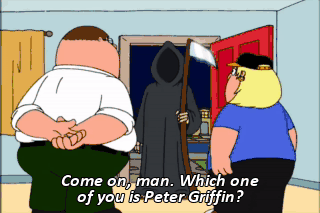 Come on, man. Which one of you is Peter Griffin? Uh... This is Peter Griffin. Hey, That's a good one.