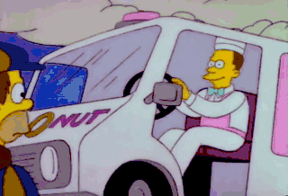 They get doughnuts! That's right. All the colors of the rainbow. Wow. Marge, what are you doing up? You need rest. I heard a noise outside, and thought it might be Homer. Ay!