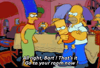 All right, Bart ! That's it ! Go to your room now ! Okay. I'll take some white meat and stuffing to go, and send up the pumpkin pie in about 20 minutes. I said now ! Mom, do I have to ?