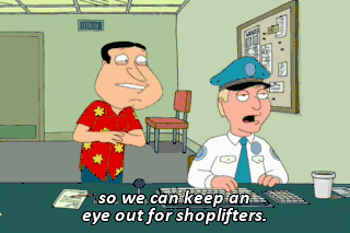 so we can keep an eye out for shoplifters. You don't say. Oh, my God! That one's having a heart attack!